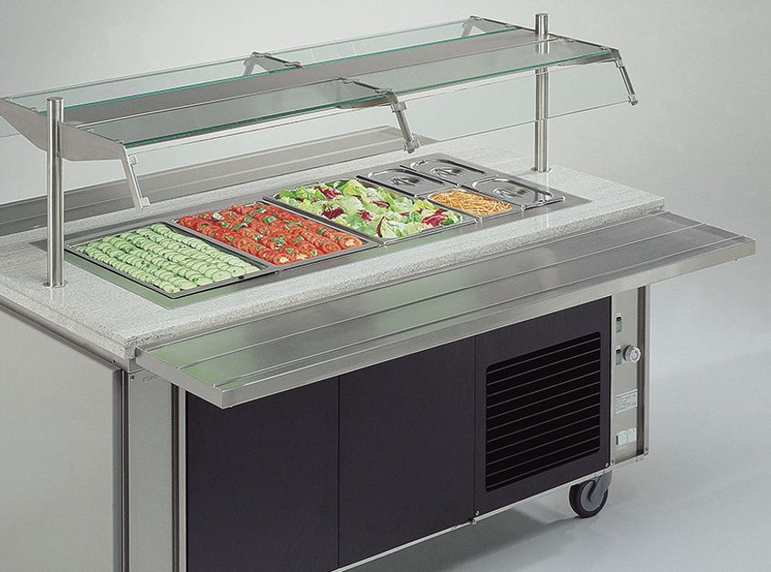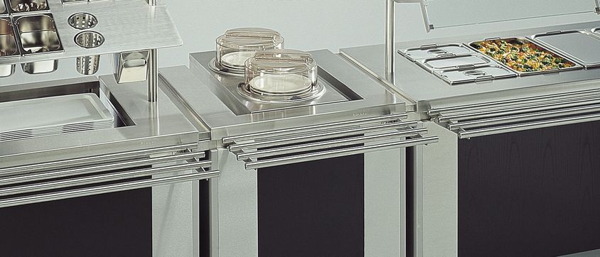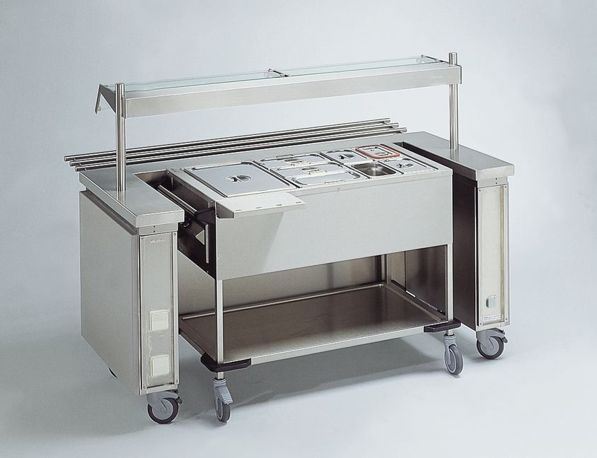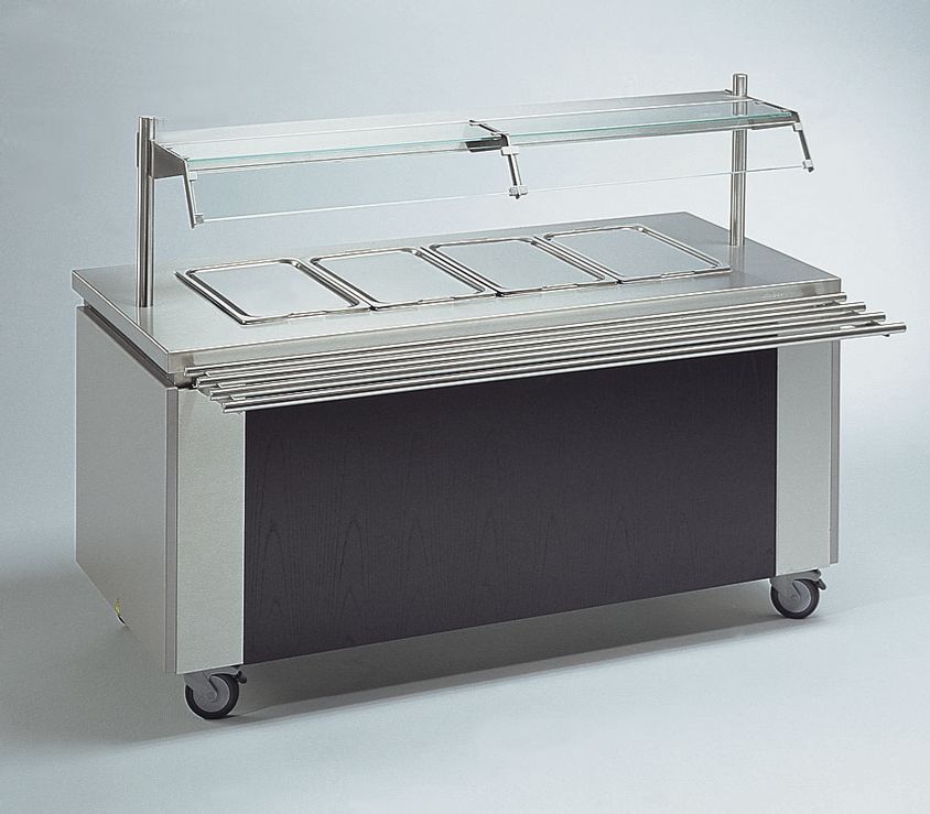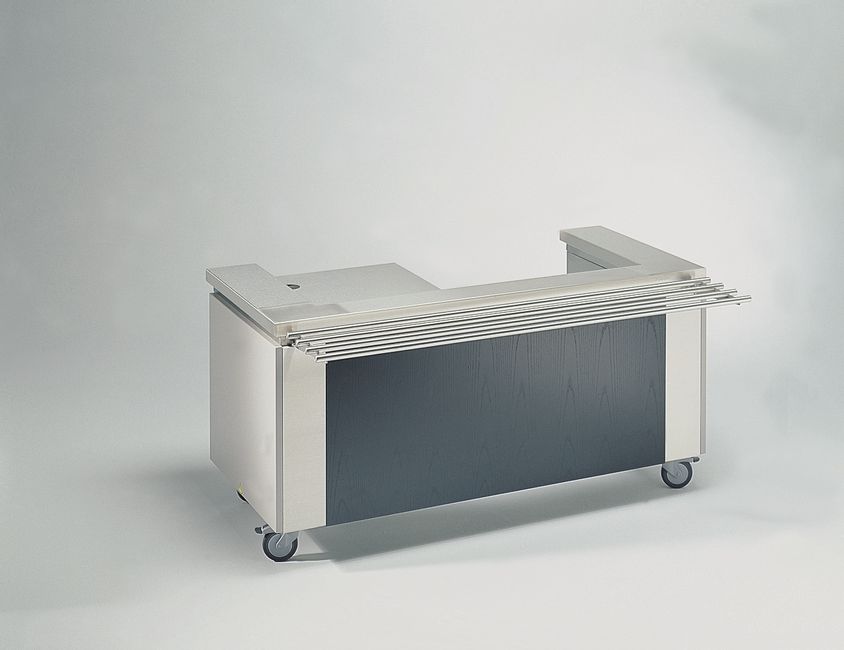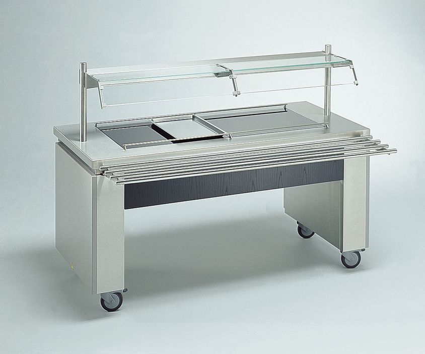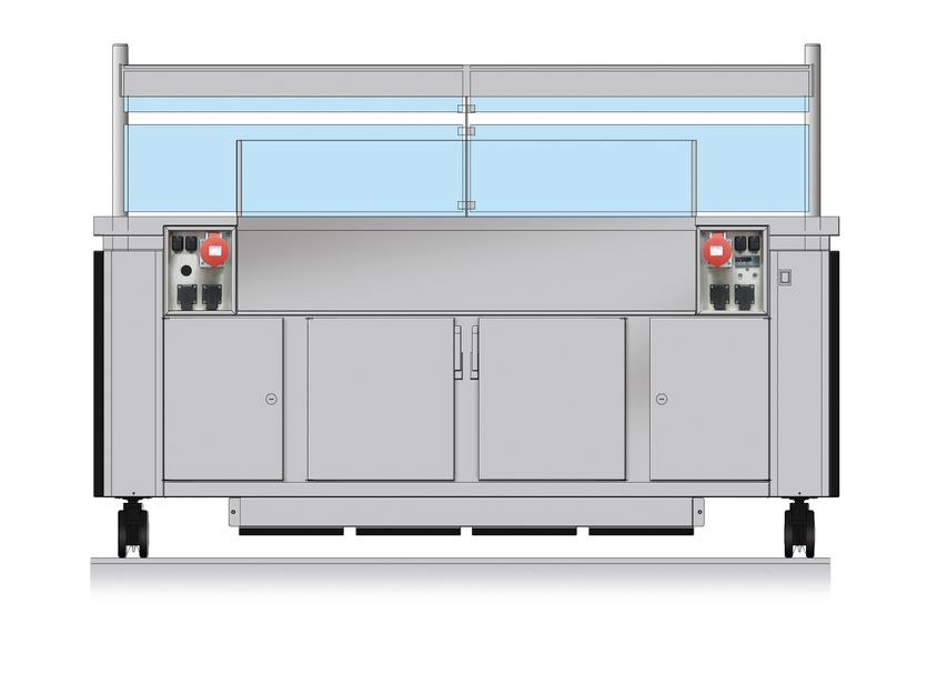 Alle Rolling Buffets sind elektrisch anschlussfertig verdrahtet und mit einem 380 Volt Anschluss ausgeführt. Sämtliche technischen Anschlüsse, Funktionsschalter, Digitalanzeigen sind immer in einer Funktionsblende zusammengefasst, separat geschützt und bei Bedarf gut zugänglich.