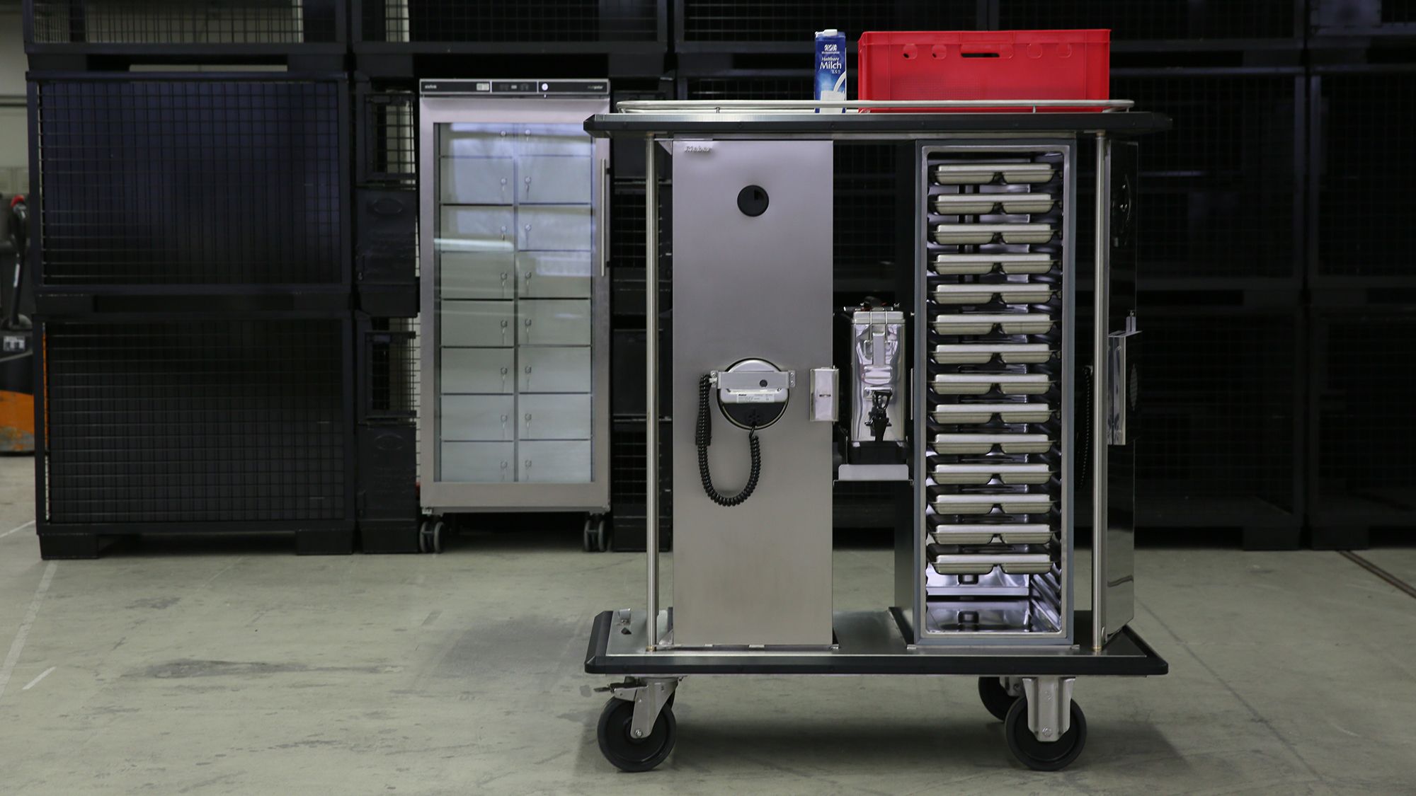 Sicherheit steht bei unserem JVA-Konzept an erster Stelle. Dieses bietet Ihnen Vielfalt von der sicheren Menüschale in robuster Sicherheits- und Hygieneausführung, speziell für den Einsatz in der JVA. Mit dem passenden JVA-Transportwagen können die befüllten Speisen einfach und sicher transportiert, ausgegeben sowie kalt- und warmgehalten werden. Der Wagen lässt sich flexibel nach Ihren Anforderungen und Gegebenheiten individualisieren.