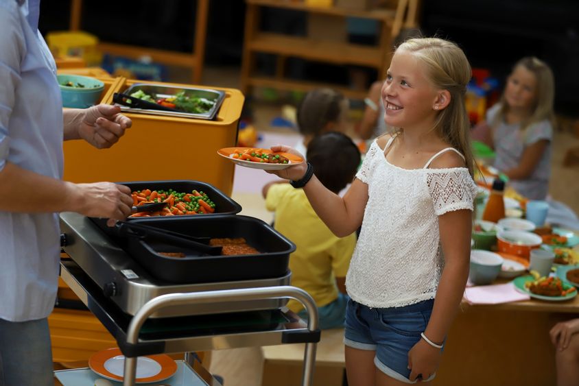 Mit unseren verschiedenen Varianten, wie der Regiostation oder dem Speisentransportwagen STRW, können die Speisen absolut sicher, kalt oder warm, im GN-System direkt zur Ausgabe für die Kinder gebracht werden. Zudem kann in den mobilen Wagenvarianten zugleich regeneriert, warm- oder kaltgehalten und ausgegeben werden. Im klassischen Schöpfsystem kann so auf die individuellen Wünsche der Kinder eingegangen werden und die Speisenportionen auf die Teller und dann auf den Tabletts verteilt werden.