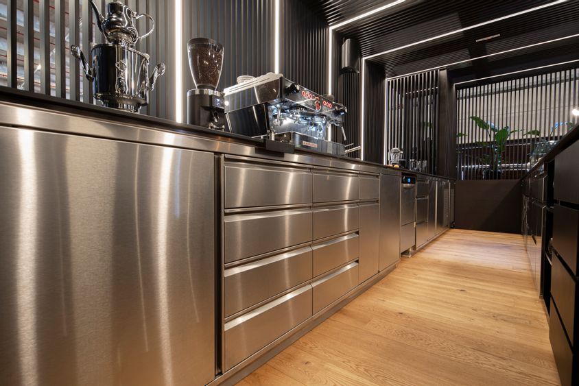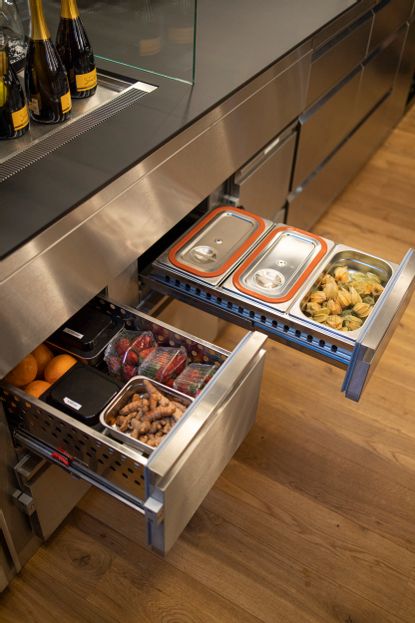 • Diverse hochwertige Schrank- & Schubladenausführungen aus Edelstahl, bis Müllsysteme - für standardisierte Ordnungsystematik im GN-Format, robust, hygienisch & effizient