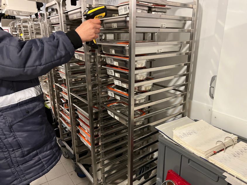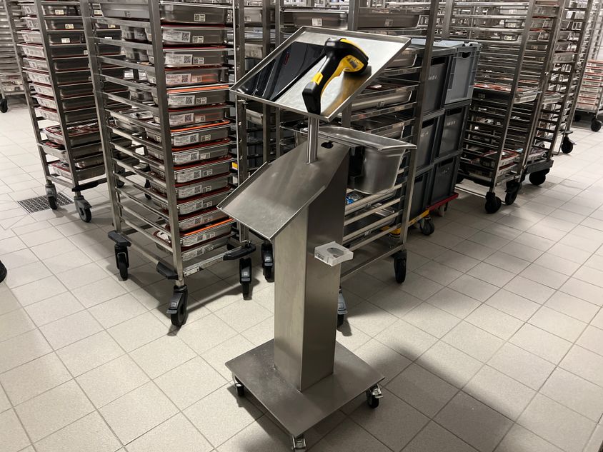 Im Großgebinde erfolgt das Scan-Verfahren nach dem gleichen Prinzip, nur über professionelle mobile Scan-Einheiten statt App, individuell integrierbar in den Küchen-Produktionsprozess.