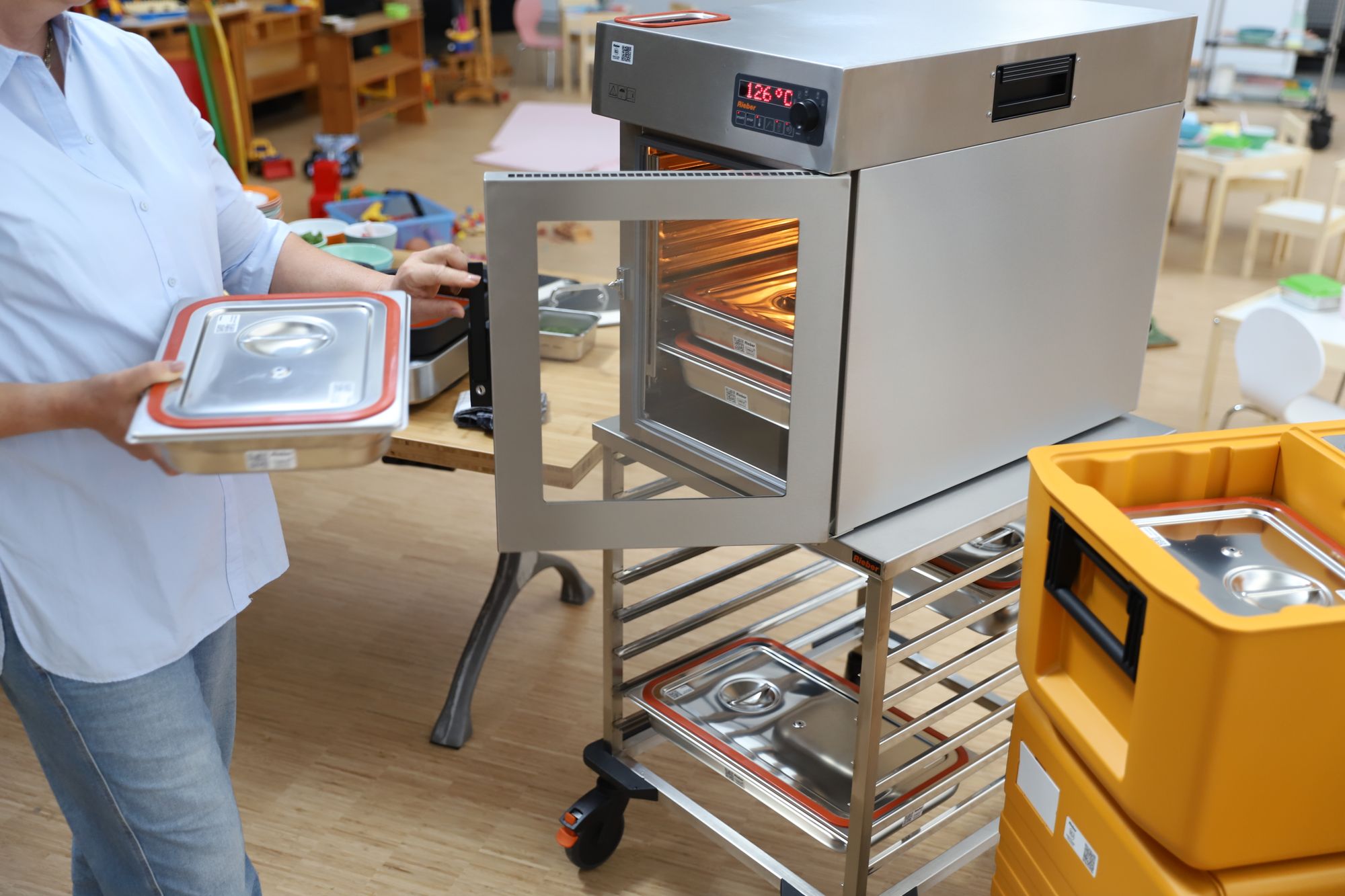 In Puncto Thermik bei kleinen Satellitenküchen in Mensen oder Kitas muss es nicht zwingend ein Kombidämpfer sein. Und auch wenn kein Starkstromanschluss oder die nötige Lüftung vor Ort ist, wie in haushaltsähnlichen Kita-Küchen, braucht es besondere Lösungen. Der navioven von Rieber benötigt weder Starkstrom noch Lüftungsanlage oder Dunstabzugshaube und kann so flexibel aufgestellt werden.