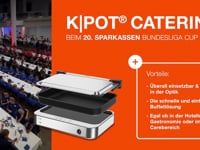 Unser K|POT® für erstklassiges Catering bei der festlichen Players Night am 16.07. zum 20. Sparkassen Bundesliga Cup der A-Junioren, in den Räumlichkeiten der Schwäbisch Hall Facility Management. Rund 400 Gäste mit Spieler, Trainer, Betreuer aber auch Sponsoren wurden bestens unterhalten und verköstigt. Uwe Hettenbach als Teamleiter Catering & Produktion, vertraut bei seinen Catering auf unser stilvolles und flexibles K|POT® Buffetsystem: "Es sieht nicht nur klasse aus, sondern macht einen riesen Unterschiede in der Qualität unserer Speisen."