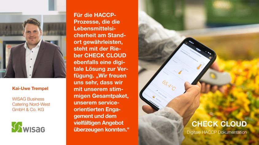 Für die HACCP-Prozesse, die die Lebensmittelsicherheit am Standort gewährleisten, steht mit der Rieber CHECK CLOUD ebenfalls eine digitale Lösung zur Verfügung. „Wir freuen uns sehr, dass wir mit unserem stimmigen Gesamtpaket, unserem serviceorientierten Engagement und dem vielfältigen Angebot überzeugen konnten. Für die Swisslog durften wir ein individuelles Gastronomiekonzept entwickeln und umsetzen, bei dem neben dem ausgewogenen Speisenangebot auch innovative Lösungen im Vordergrund stehen“, sagt Kai-Uwe Trempel, WISAG Business Catering Nord-West GmbH & Co. KG.