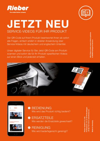 Unsere Bedienungsanleitung, sowie weitere Service-Videos & -Infos für Ihr Rieber-Produkt finden Sie ab sofort digital & papierlos und jederzeit von überall aus abrufbar.