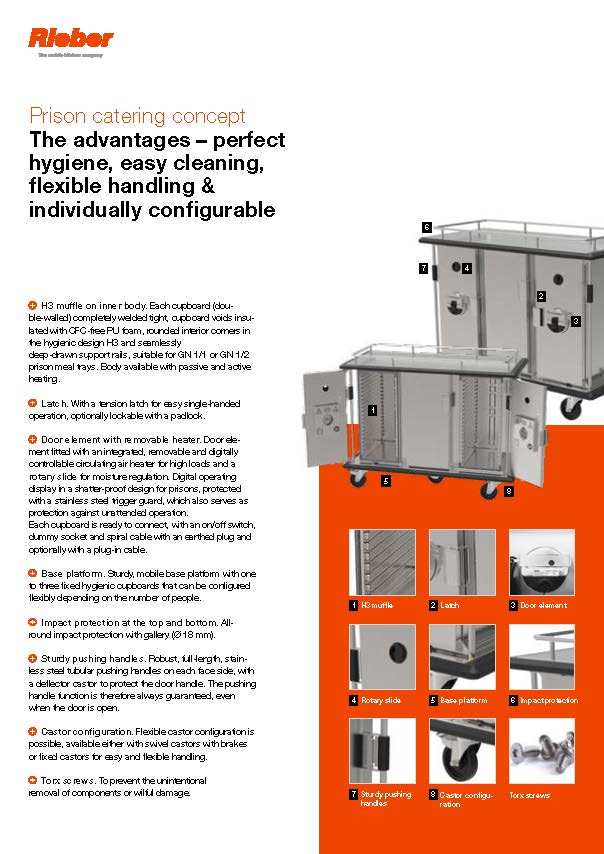 - Compatible with the 1/1 GN system and the special, safe 1/2 prison meal trays